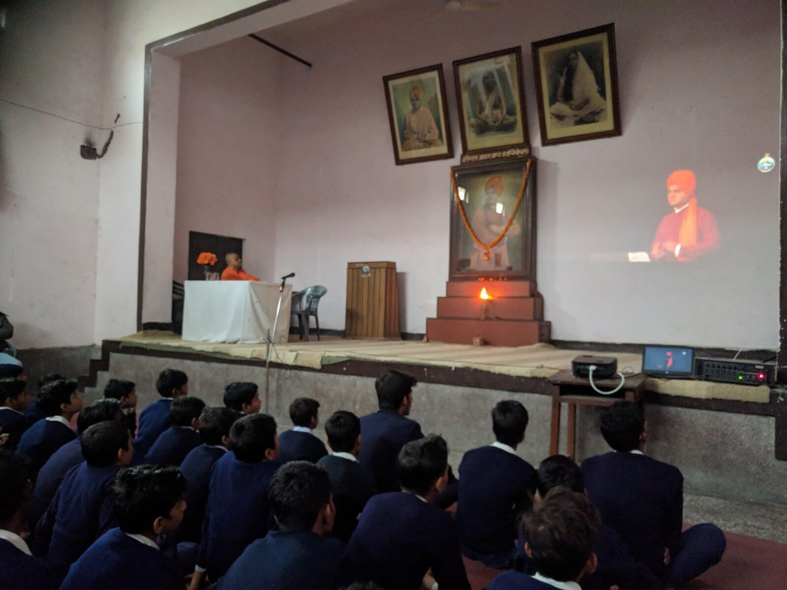 The Ashrama used to run a School named ‘Vivekananda Vidyapith’ in a small dilapidated building. In 1947 the Foundation Stone for a new building was laid just across the main campus, and this became the prestigious Ramakrishna Mission School. It slowly became an ideal institution in Uttar Pradesh. In 1983-4, because of its continuous outstanding performance in academics, the School was designated ‘Best School’ and was awarded by the State Government. At present, the School is affiliated to the U.P. Board having 576 boys students. The medium of instruction is Hindi.