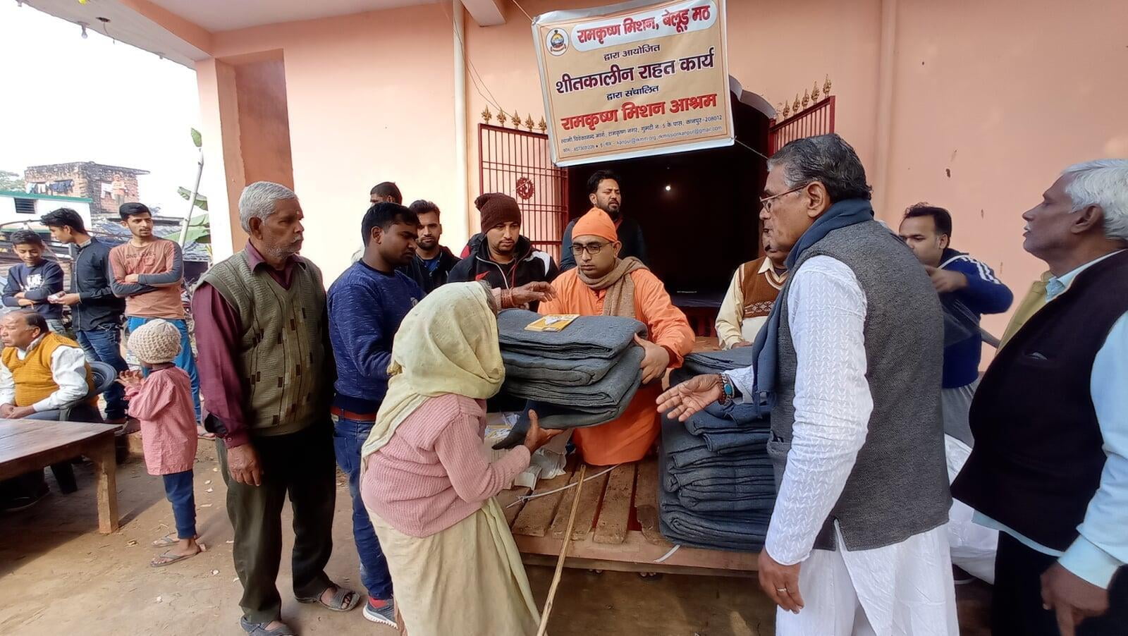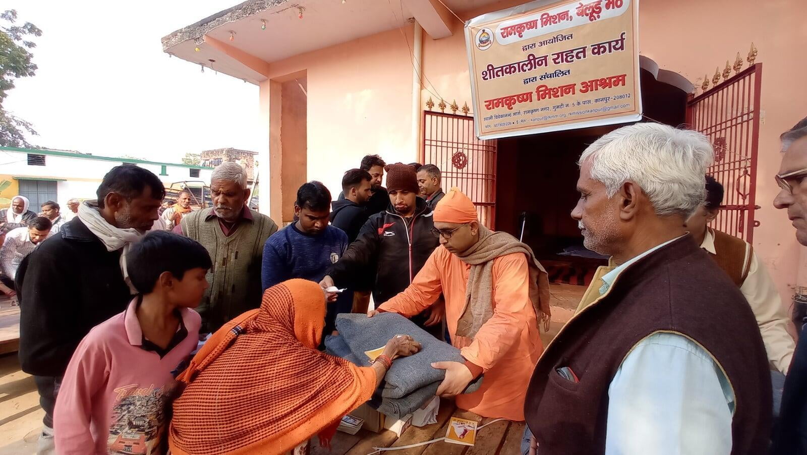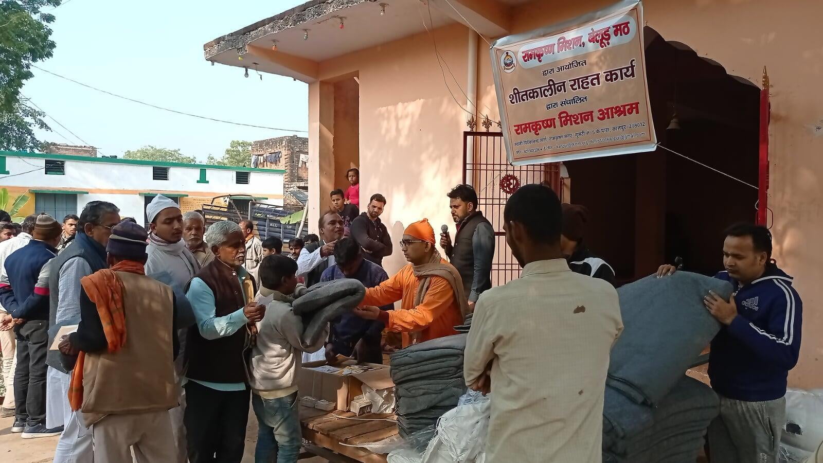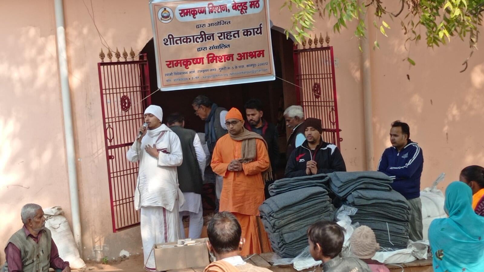 Ramakrishna Mission Ashrama Kanpur distributed 208 blankets to poor and needy people of five villages of Unnao district, Uttar Pradesh, on 2nd and 3rd January 2022. The name of the five villages is Dhannipur, Chheriha, Shuklapur, Pachaghara, with Tajpur Naubasta as the center of distribution. A copy Holy Mother’s book “Mai Maa Hoon- Sabki Maa” was given to all, along with the blankets.