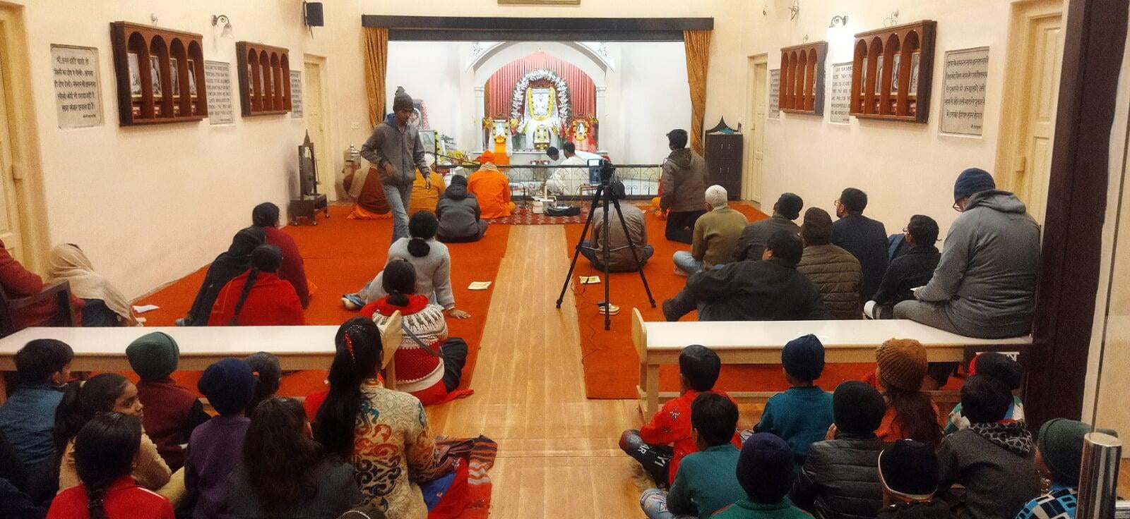 Sandhya Aarati - Everyday evening at 5:45 to 7:00 (Depending on the Sunset time) - Khandan - Bhava - Bhandana and Om Rhrim Rhutham - Composed by Swami Vivekananda will be sung at the Dhayna Mandir of Sri Ramakrishna.